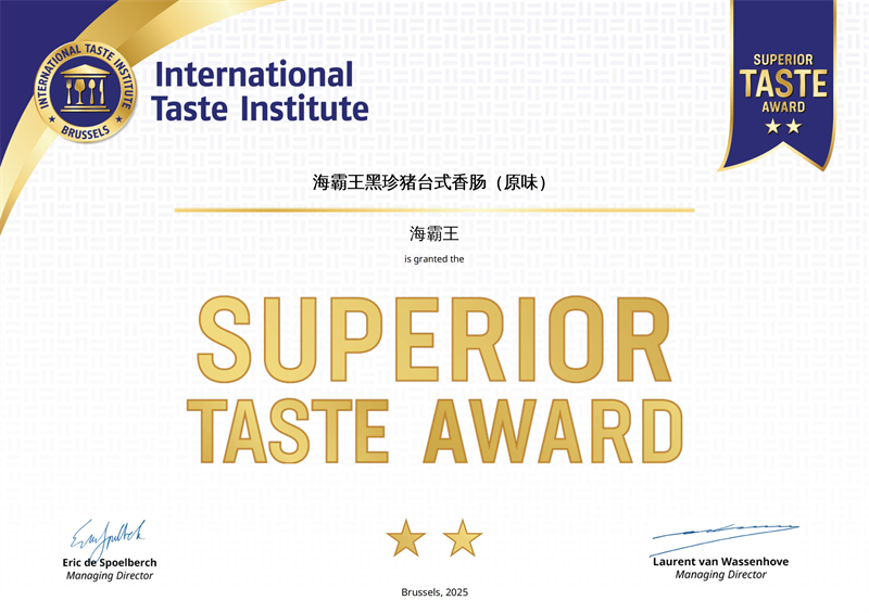 无独有偶,海霸王另一明星产物“黑珍猪台式腊肠”正在比利时布鲁塞尔斩获有“食物界奥斯卡”之称的“国际甘旨章”,质量取甘旨均获得国际食物行业承认。